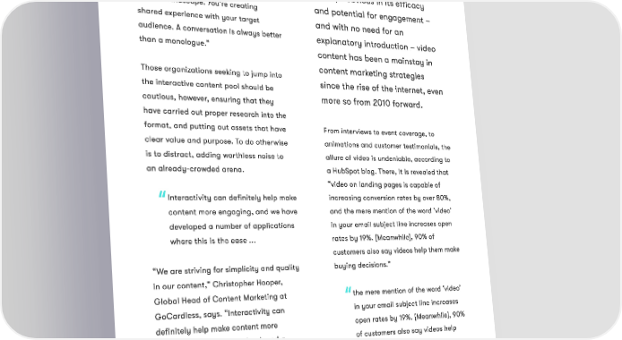 4 “But brands with more technical solutions can no longer do without,” says Joost de Kok, Head of Marketing at Contentoo. Video content “It’s a necessity when it comes to differentiating yourself from your competitors. I’m convinced interactive Perhaps obvious in its efficacy content will fundamentally change the and potential for engagement – content landscape. You’re creating shared experience with your target and with no need for an audience. A conversation is always better explanatory introduction – video than a monologue.” content has been a mainstay in content marketing strategies Those organizations seeking to jump into since the rise of the internet, even the interactive content pool should be more so from 2010 forward. cautious, however, ensuring that they have carried out proper research into the format, and putting out assets that have From interviews to event coverage, to clear value and purpose. To do otherwise animations and customer testimonials, the is to distract, adding worthless noise to allure of video is undeniable, according to an already-crowded arena. a HubSpot blog. There, it is revealed that “video on landing pages is capable of Interactivity can definitely help make increasing conversion rates by over 80%, content more engaging, and we have and the mere mention of the word ‘video’ developed a number of applications in your email subject line increases open where this is the case ... rates by 19%. [Meanwhile], 90% of customers also say videos help them make “We are striving for simplicity and quality buying decisions.” in our content,” Christopher Hooper, Global Head of Content Marketing at the mere mention of the word ‘video’ GoCardless, says. “Interactivity can in your email subject line increases definitely help make content more open rates by 19%. [Meanwhile], 90% engaging, and we have developed a of customers also say videos help number of applications where this is the them make buying decisions. case, but interactivity has to be used wisely. If it adds nothing to or detracts Unsurprisingly, video content also plays a from the content experience, then we key role for our experts in 2022. They, have found it is not worth it.” however, are predominantly shifting Page 7 State of Content Creation 2022